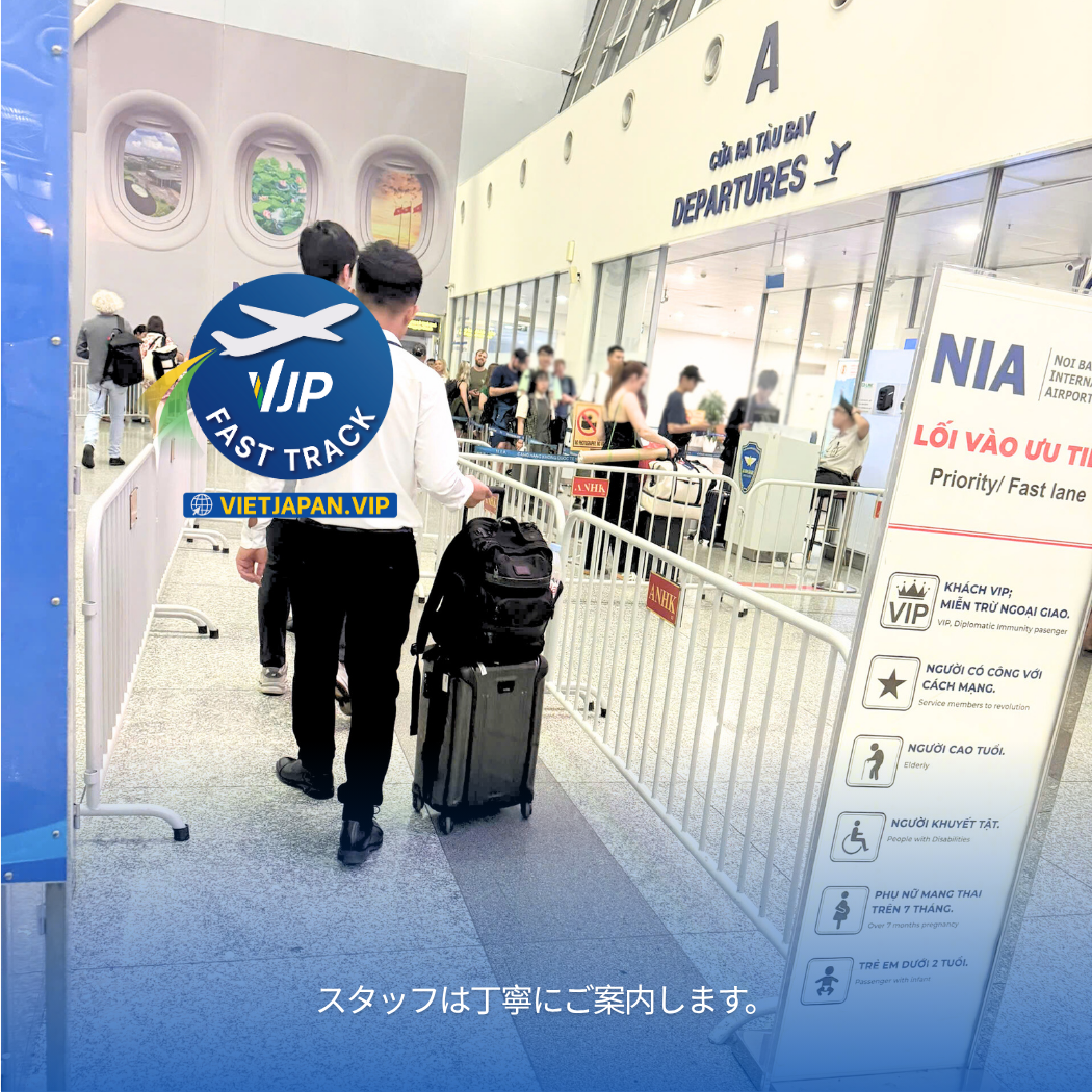 VIET JAPAN PARTNER COOPERATIONが提供しているファストトラックサービスは、ビジネスクラスやファーストクラスの航空券のように優先レーンをご利用される他、手続きの全過程で案内人が丁寧に同行されます。