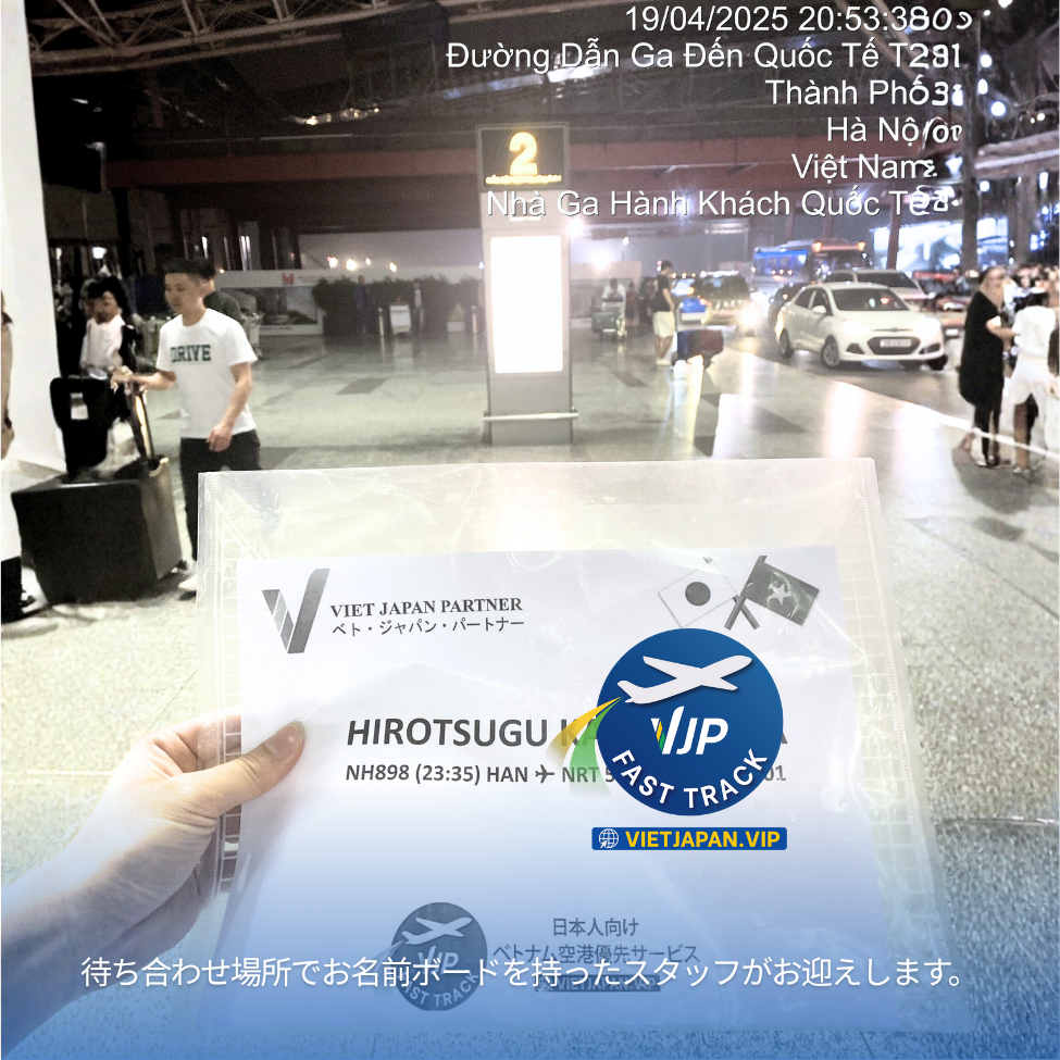 VIPのお客様や、初めてベトナムに訪れる方で、会社の担当者が迎えに行くのが難しい場合におすすめです。(例: 飛行機の到着が深夜や早朝の場合。)ポイント: スタッフが空港の外まで同行し、専用車でホテルや指定の場所までお送りするため、会社の担当者が迎えに行く必要がない。